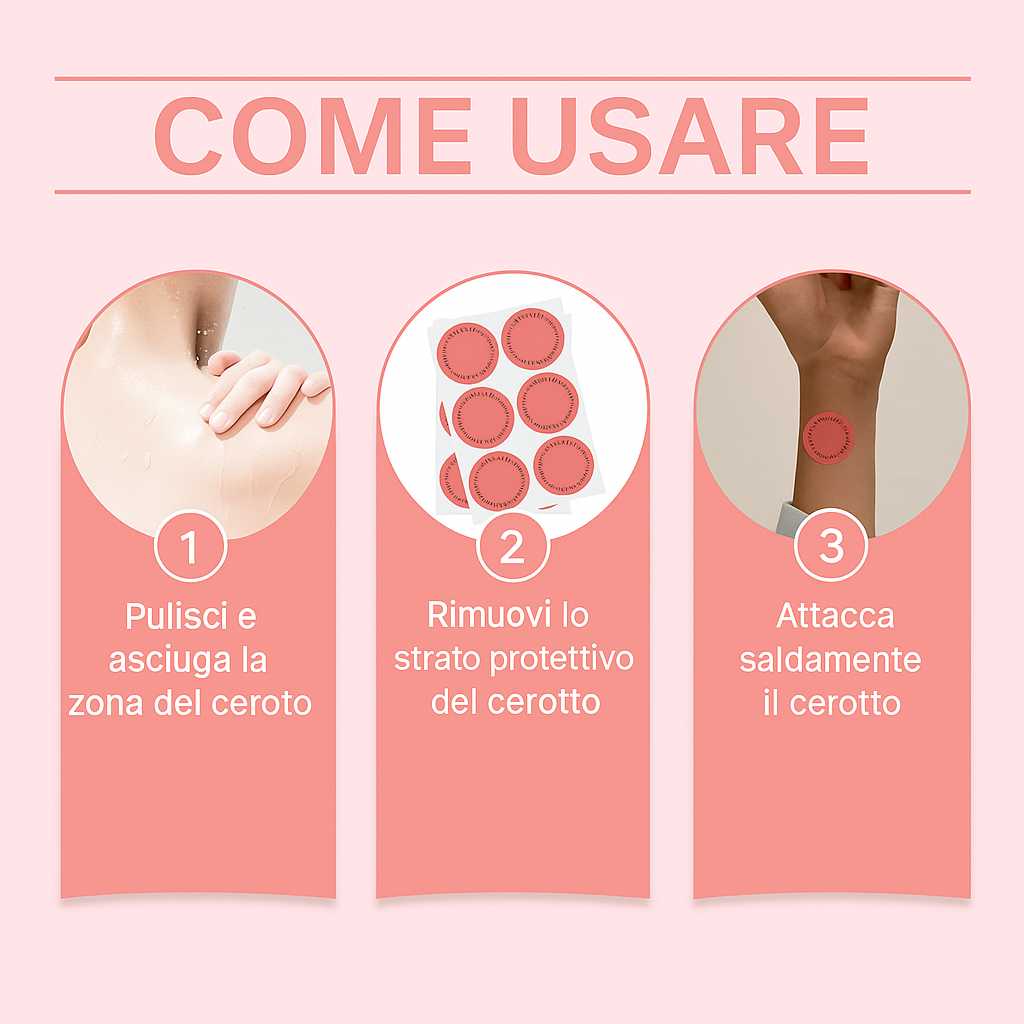 Ogni cerotto è accuratamente progettato per somministrare nutrienti attraverso la pelle direttamente nel flusso sanguíneo, senza passare per il processo digestivo.